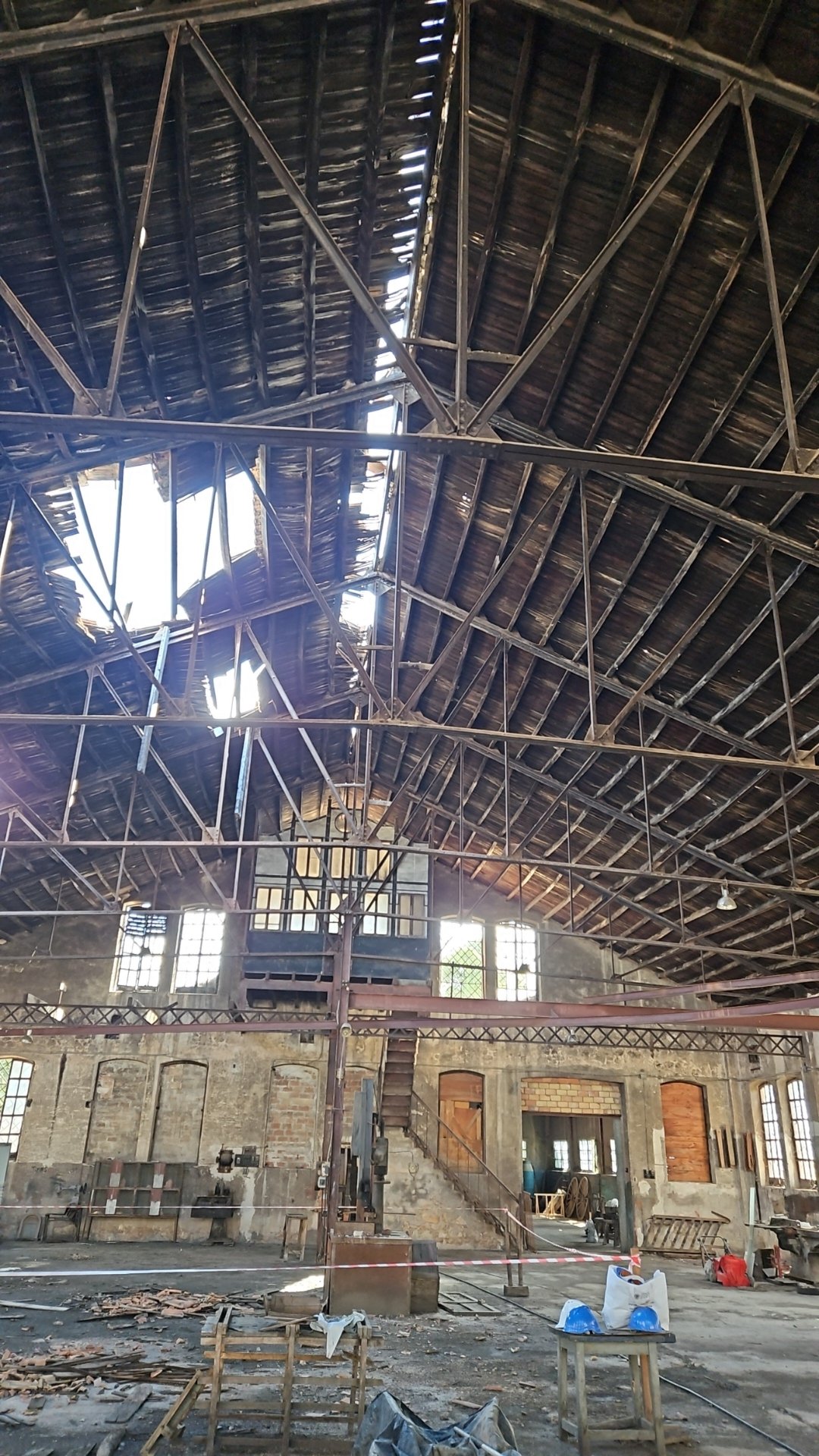 Hace décadas que la actividad económica terminó. Hoy en día la cubierta de la nave principal del taller se encuentra muy deteriorada y es urgente repararla para evitar un mayor deterioro del edificio. Un colapso parcial de la cubierta puede originar un derrumbe generalizado de los muros de la fábrica.